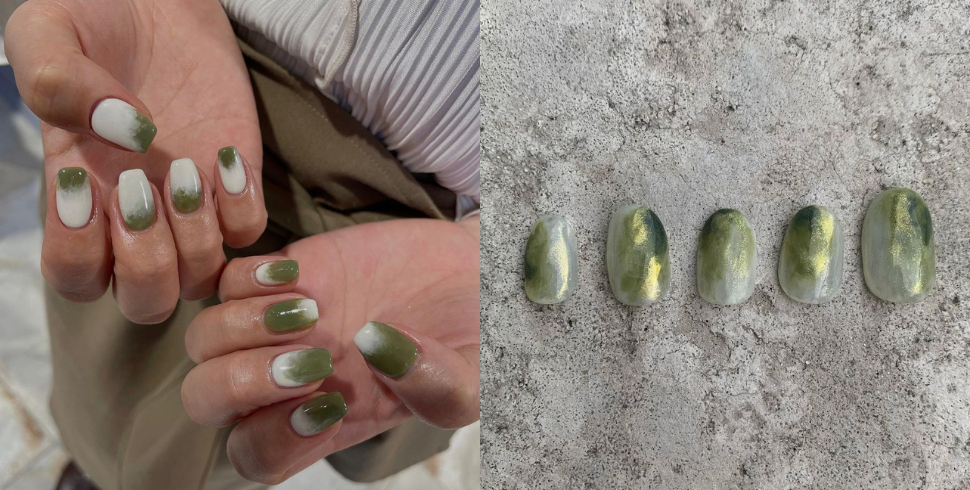暈染、漸層都可以展現出「抹茶指彩」有的意境感,滿滿的日系堅持沈浸在這出不了國的相思情緒中也不錯,綠色本身也容易使人心情開朗,所以小時候媽媽才會要我們多看綠色東西,壓力過大時綠色會是我們很好的幫手,尤其還加上質感得元素「抹茶指彩」相信會讓你在職場上多了一點支撐的保護港,好好的發揮自己所長。