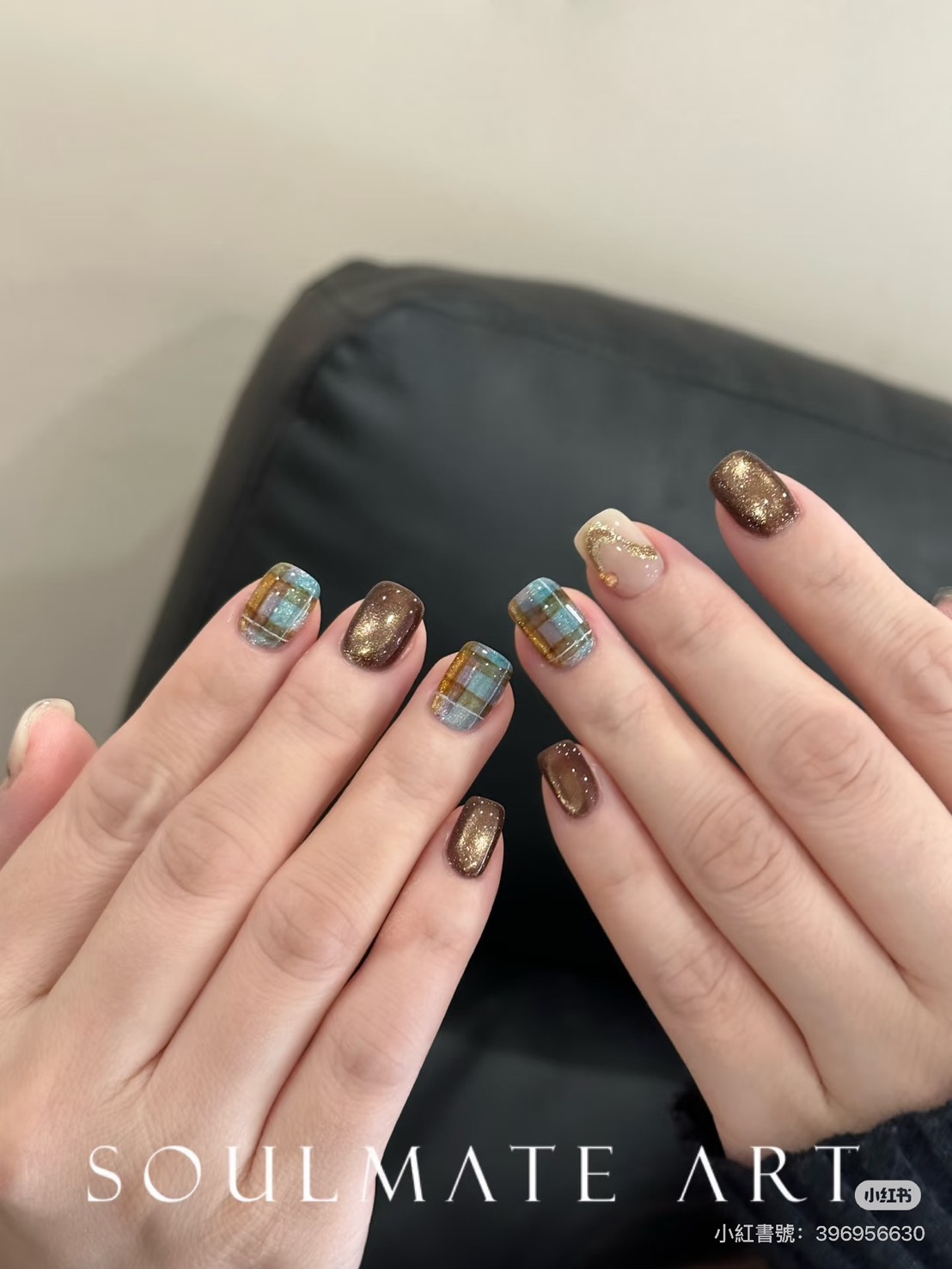 棕色與藍色,看似對比,卻是人生最和諧的組合,就如同「藍棕格紋指彩」。棕,是土地的顏色,象徵穩定、踏實與包容;藍,是天空與海洋的顏色,代表自由、思考與深邃,當這兩種顏色交融時,就像是我們在人生旅途中學會的平衡——既要腳踏實地,也要仰望遠方,棕色給我們根,藍色給我們夢;一柔一靜,一暖一冷,共同構築出成熟卻不失浪漫的人生底色。