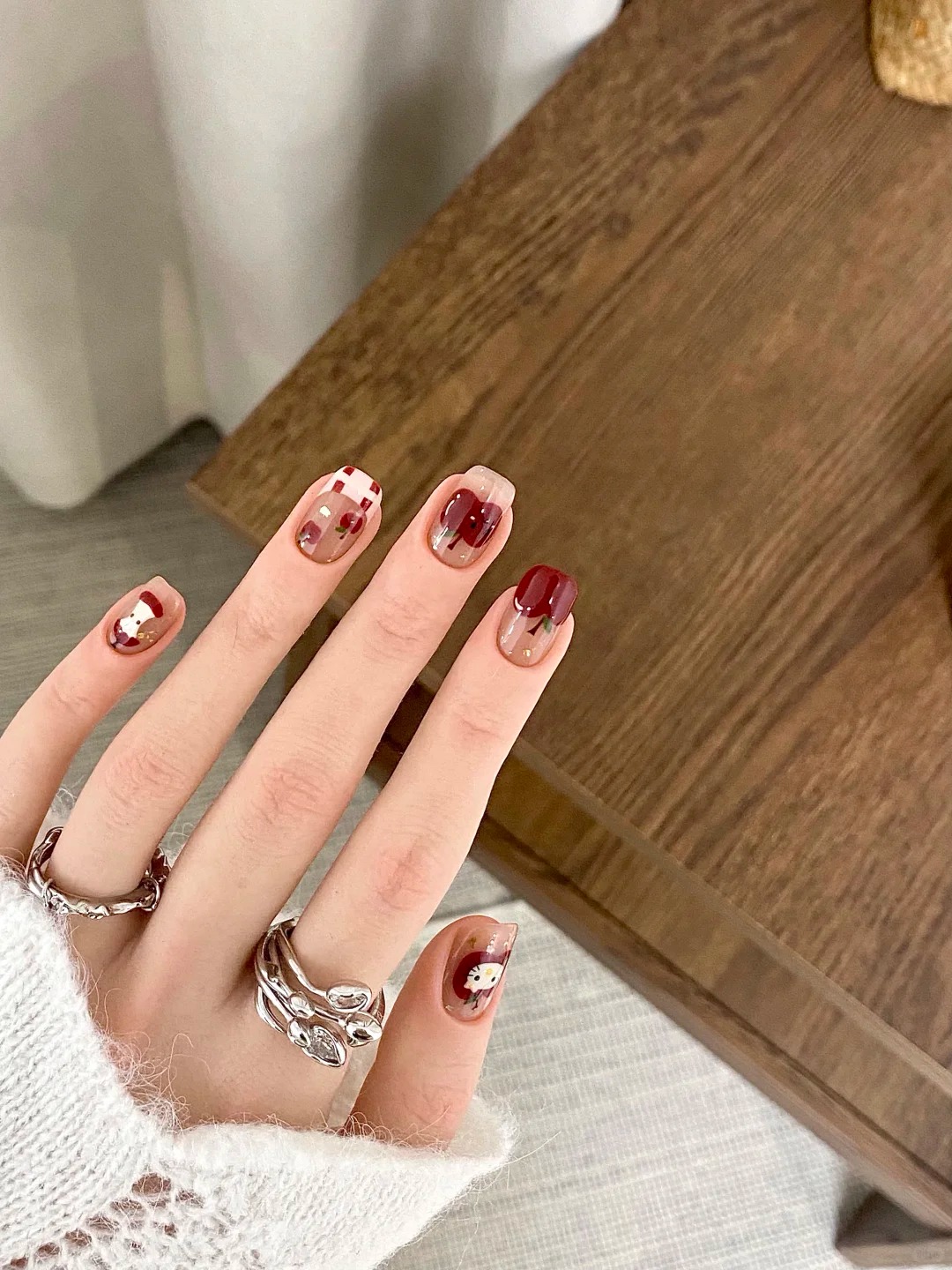 蘋果總是帶著一種童年的氣息,如同「手繪蘋果指彩」紅潤的顏色、清脆的聲音,彷彿只要咬下一口,就能短暫回到什麼都不用想得太複雜的時候。那時候的快樂很單純,一顆蘋果、一段午後、一點陽光,就足以填滿整個世界,長大後,生活變得複雜,但蘋果依然在那裡,提醒我們其實可以選擇用更溫柔的方式,面對每一天。