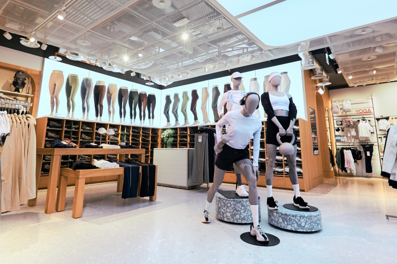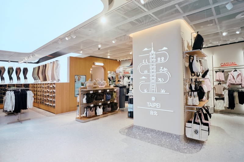 走入全新 lululemon 台北 101 門市,商品陳列架採用大量木質材料,並結合磨石子地板與金屬細節,重現老台北獨有的韻味與溫度。櫃檯旁的牆面更以發光燈條勾勒出台北 101 建築輪廓,並融入 U-BIKE、瑜伽、跑步及綠植等專屬台北的城市符號,完美展現在地都會特色。門市內寬敞明亮的陳列與試穿區域,也提供顧客更舒適自在的體驗旅程,進一步探索 lululemon 所提倡的熱汗生活與正念理念。