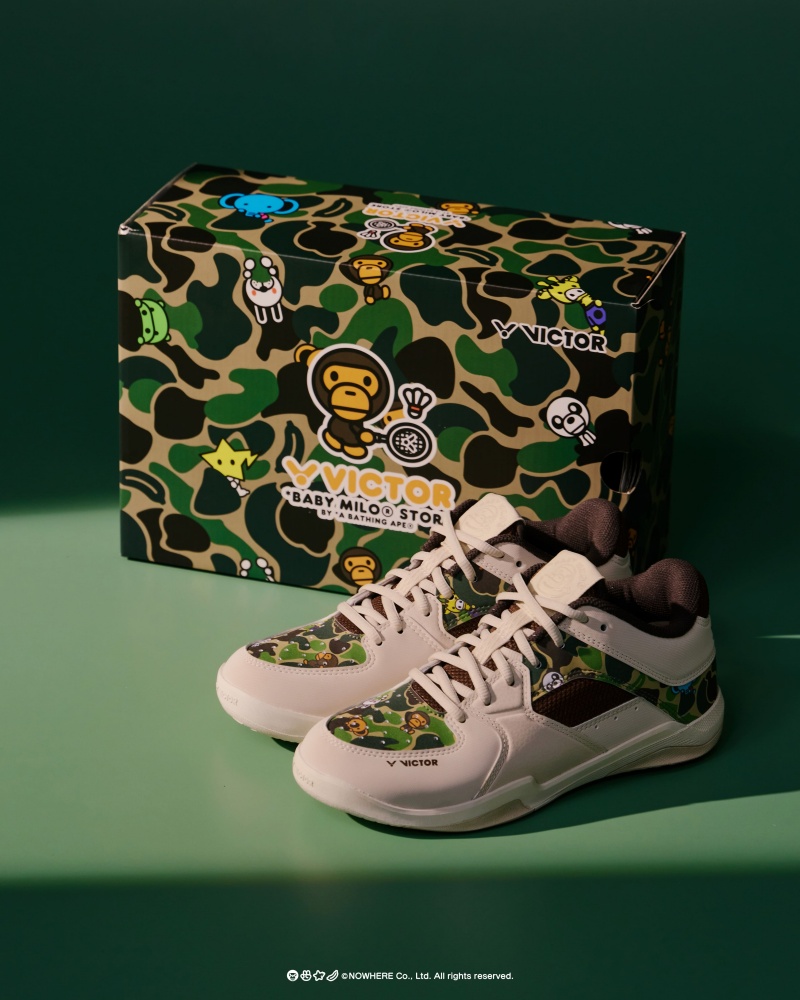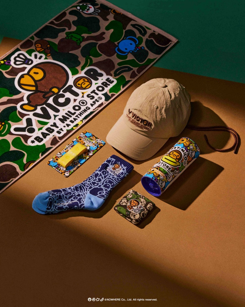 羽球領導品牌VICTOR攜手時尚品牌BABY MILO STORE®,推出多款聯名羽球裝備,掀起運動新風潮。VICTOR x BABY MILO STORE® 全套聯名系列商品,從專業球拍、羽球鞋、NCS碳音球到日常不可缺少的服飾與帽子等配件,兼具運動機能與潮流時尚,結合BABY MILO® 經典角色與獨特迷彩圖案,為羽球愛好者打造羽球與潮流文化的跨界羽球裝備。