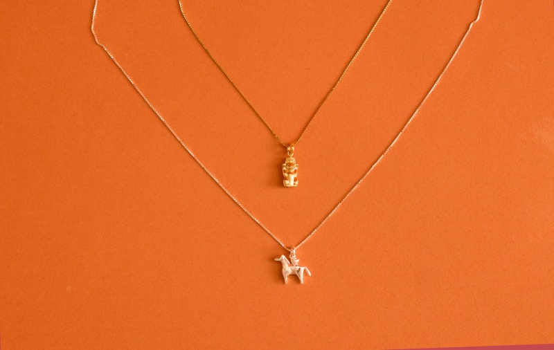 本次聯名系列除祈願手鍊可依心意與喜好自由選擇金、銀配色共26款,更推出超可愛桌面小擺件,分別以大、小福獸雙雙加持,不論座立於辦公桌、收納櫃,都能默默無負擔的守護日常。除了祈願手鍊以外,vacanza首次為祈願系列推出延伸商品——項鍊及耳環。全系列飾品皆採用低敏925純銀製作,以「實踐馬」與「招財喵」為領銜主角紛紛躍上項鍊,輕鬆融入日常穿搭,祈願耳飾再加碼推出「財富雞」、「結緣兔」、「汪旺犬」,集結戀愛、財富、以及好人緣祝福!