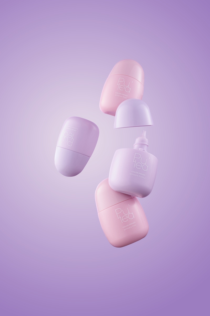 底妝前,先把膚色調整至理想狀態,「Pu-Tea 植萃校色飾底乳 SPF50 ★★」推出裸粉色與嫩紫色兩款選擇,能有效均勻膚色,改善暗沉與蠟黃問題,進一步提亮整體氣色,呈現自然紅潤感。配方中添加金盞花露、洋甘菊、積雪草等植萃成分,為肌膚打下水潤基底,提升後續底妝的服貼度與持久度,打造輕盈透亮的妝感。