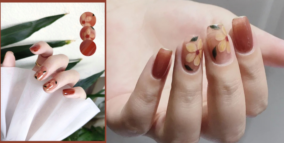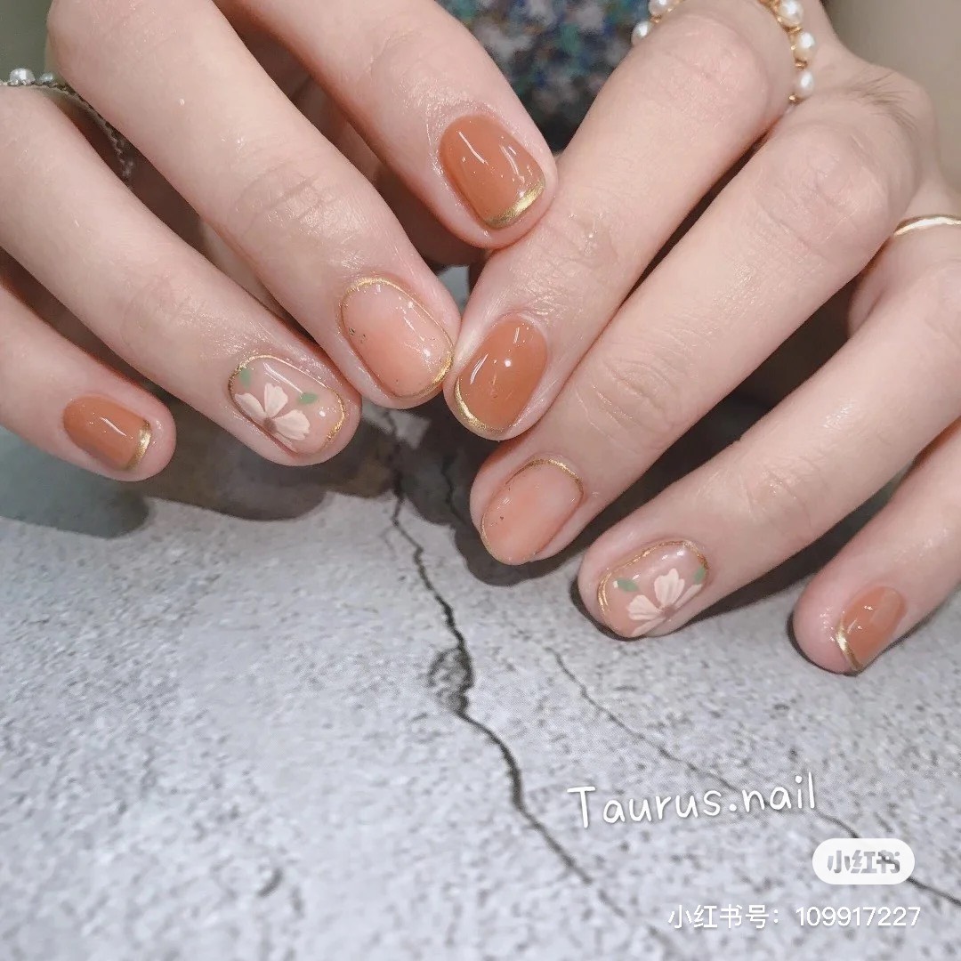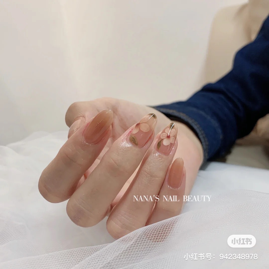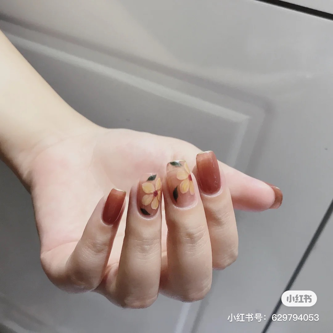 微醉「長島冰茶指彩」在指尖上顯得討喜動人,搭配手繪復古花朵令人如癡如醉,適合愜意的午後,製做起來也很簡單,以往會先將指彩暈染後在做其他添加,但在「長島冰茶指彩」則是在透明指尖上先繪製好想要的圖案後,再將透紅棕色的凝膠疊擦在指尖上,透出微微的優柔感,毫不吸引。