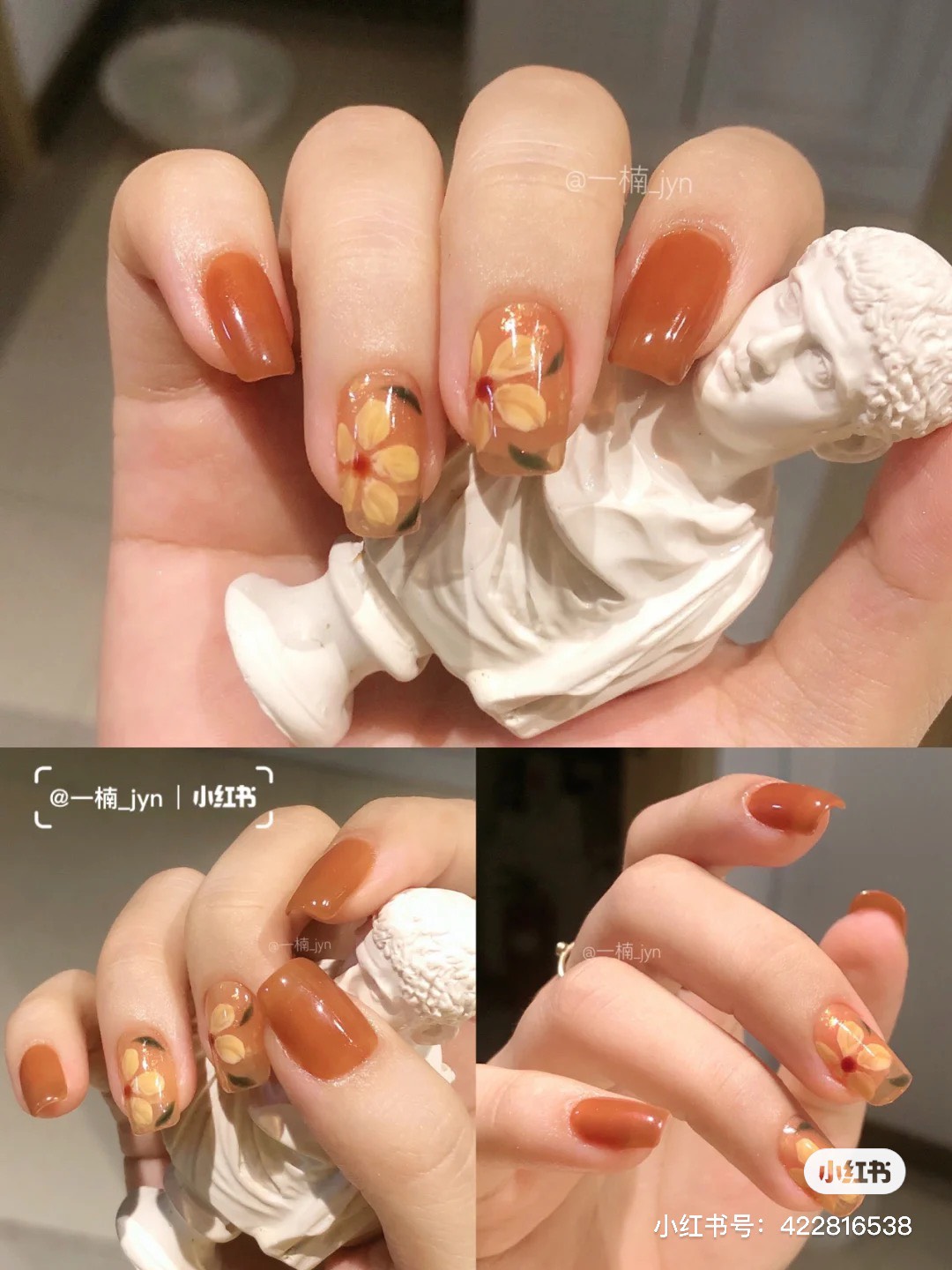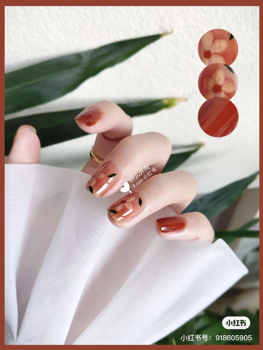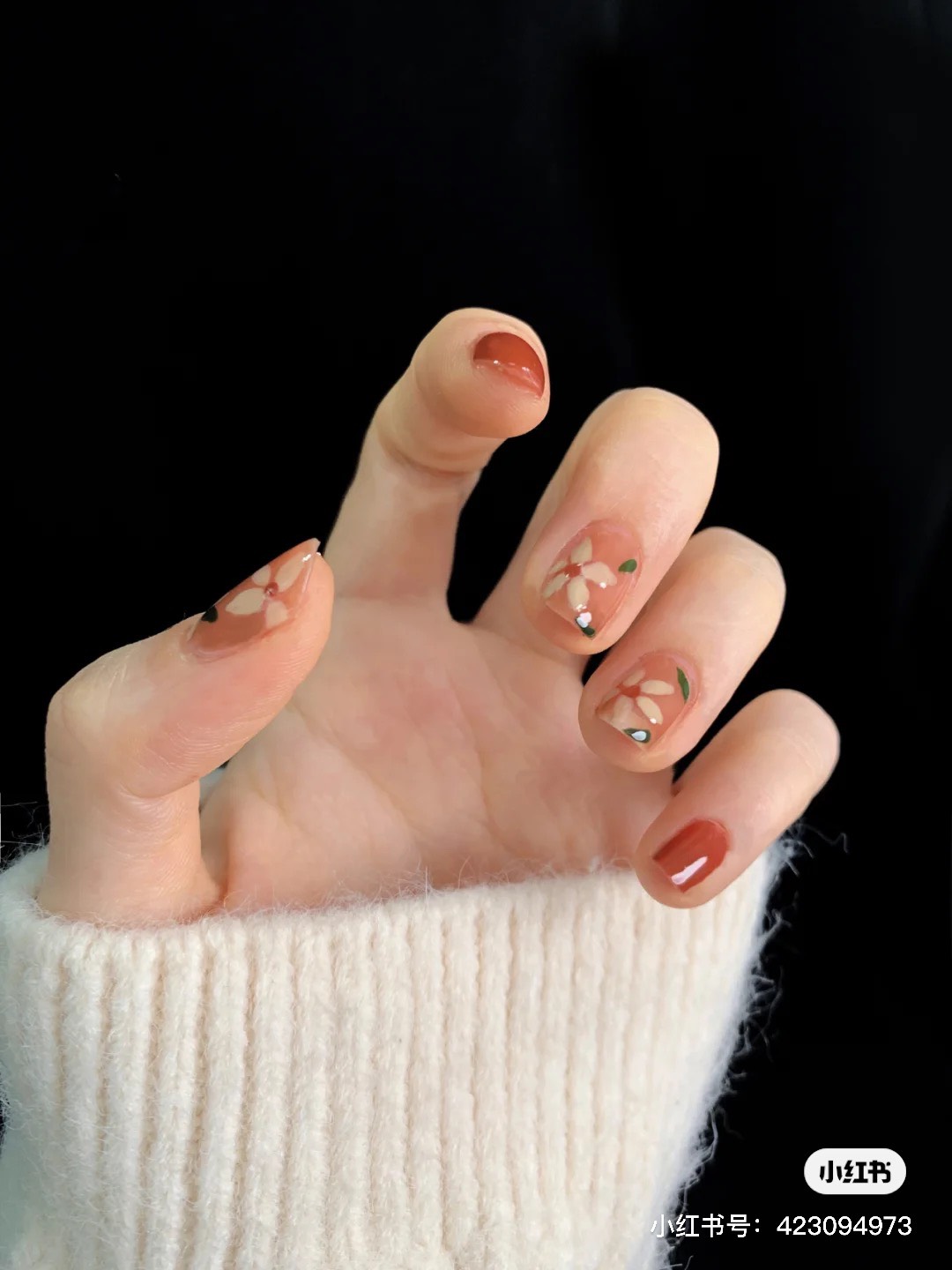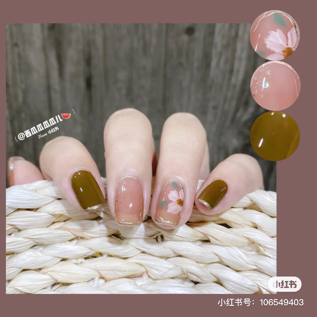 微醉「長島冰茶指彩」在指尖上顯得討喜動人,搭配手繪復古花朵令人如癡如醉,適合愜意的午後,製做起來也很簡單,以往會先將指彩暈染後在做其他添加,但在「長島冰茶指彩」則是在透明指尖上先繪製好想要的圖案後,再將透紅棕色的凝膠疊擦在指尖上,透出微微的優柔感,毫不吸引。