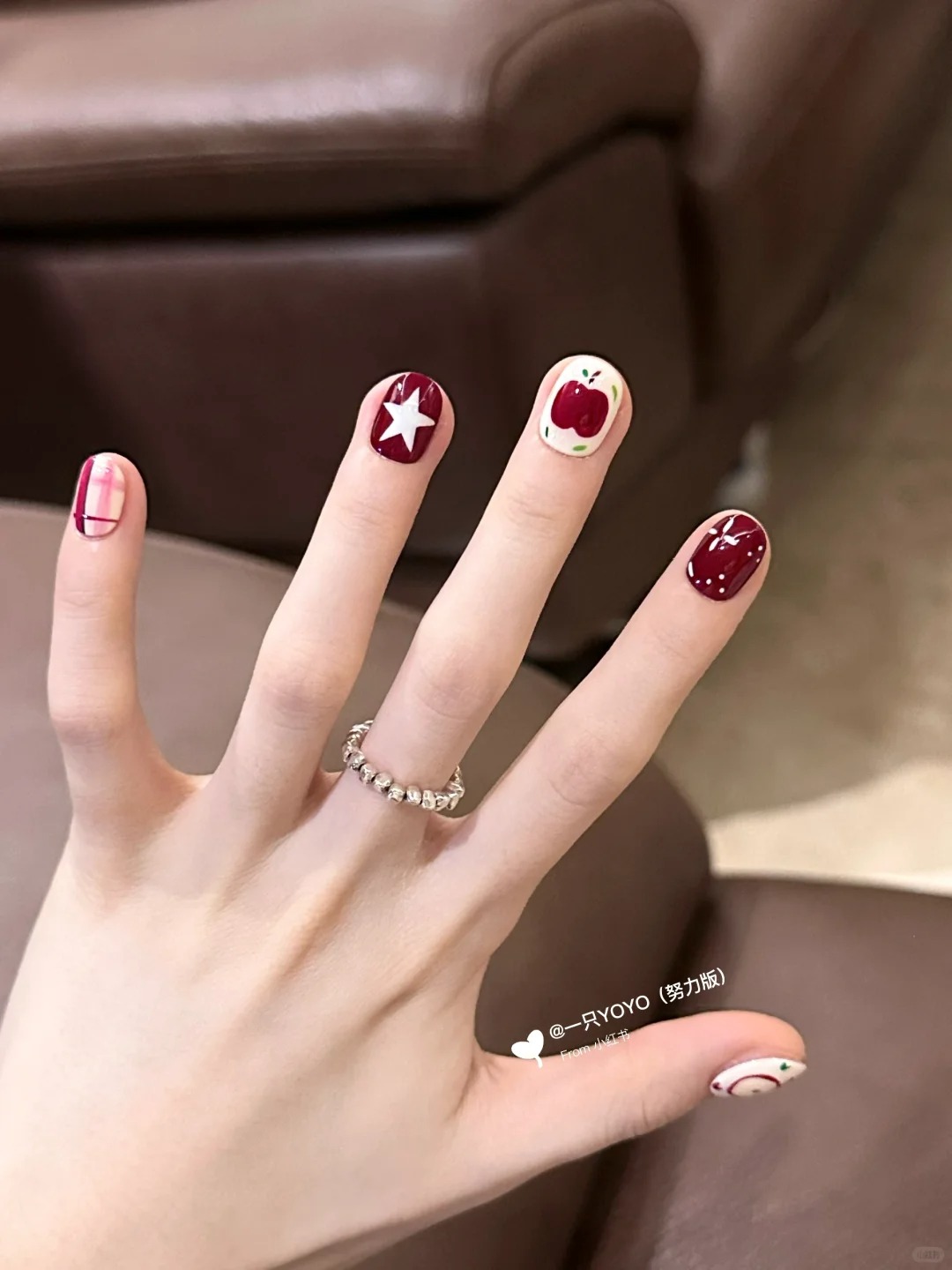 於是我們學會在日常裡留一點童趣,讓蘋果替我們接住那些還沒準備好的情緒,讓自己有空間慢慢消化、慢慢前進。當你願意這樣對待生活,世界也會回以更柔軟的回應。換上「手繪蘋果指彩」煩惱終究會過去,而那一口清脆的甜,會在記憶裡提醒你——原來,生活也可以這麼輕。