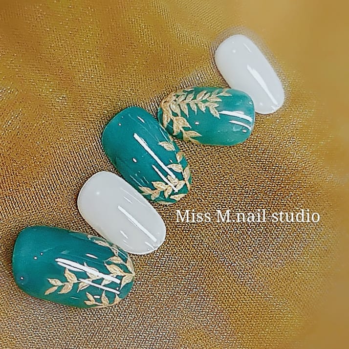 ▼不只素材多,Miss M. nail studio美甲師的手繪技巧也是一流的~帶點迷幻的多瑙河綠可以讓你展現典雅中帶有神秘魅力