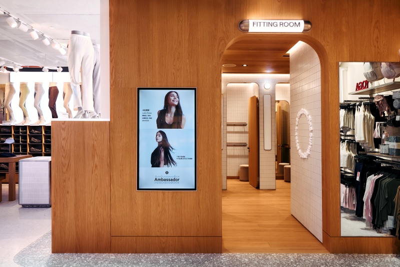 走入全新 lululemon 台北 101 門市,商品陳列架採用大量木質材料,並結合磨石子地板與金屬細節,重現老台北獨有的韻味與溫度。櫃檯旁的牆面更以發光燈條勾勒出台北 101 建築輪廓,並融入 U-BIKE、瑜伽、跑步及綠植等專屬台北的城市符號,完美展現在地都會特色。門市內寬敞明亮的陳列與試穿區域,也提供顧客更舒適自在的體驗旅程,進一步探索 lululemon 所提倡的熱汗生活與正念理念。