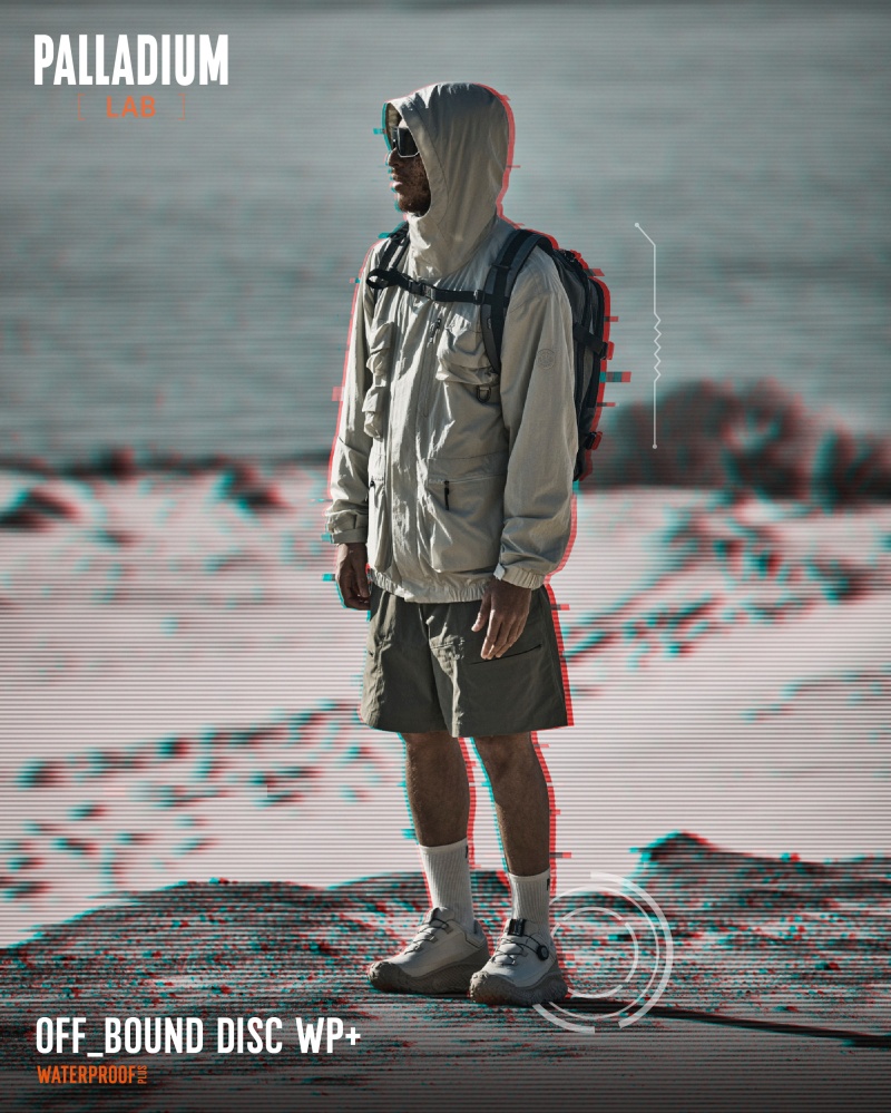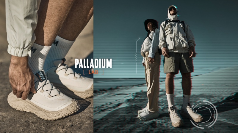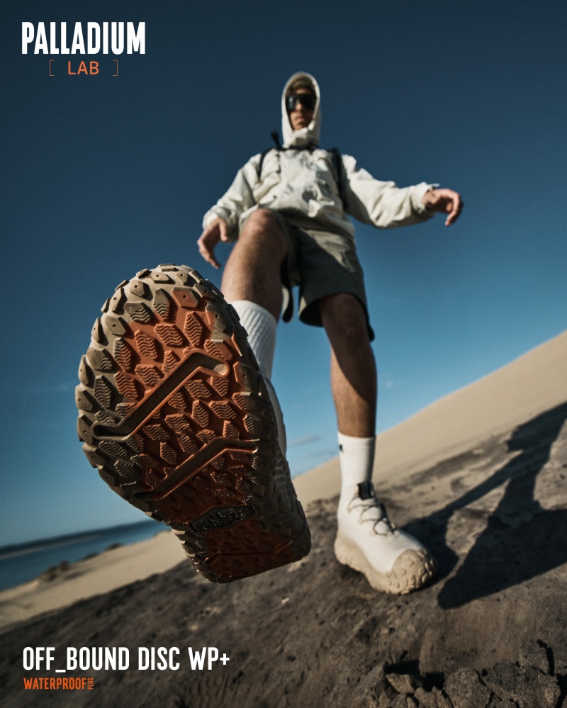 PALLADIUM[LAB]實驗計畫以「FUNCTION MAKE IT FASHION」為設計核心,展現品牌對未來機能與戶外科技的極致實踐,透過不斷進化、超越界限,推出首款旋鈕快速鞋帶系統的OFF_BOUND DISC WP+防水波浪鞋,宣示定義機能潮流的企圖,邀請城市探索者跨越界限,讓機能成為驅動風格的關鍵動能,本次形象照以無垠荒野與沙漠邊界為場景,藉由遼闊地景與鞋款俐落線條的對比,勾勒出極具張力的URBAN OUTDOOR探險視覺語彙,科技風格結合大地色調,在廣袤無垠的沙漠中,完美詮釋了無畏邊界、主宰場域的機能美學。